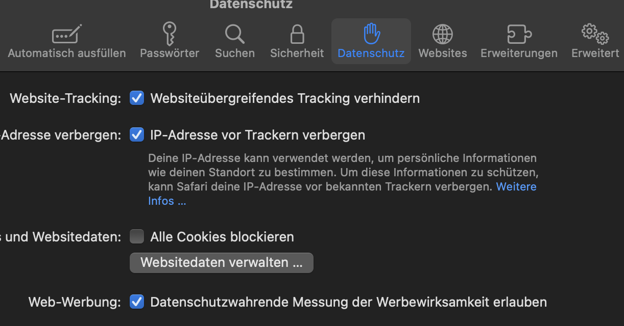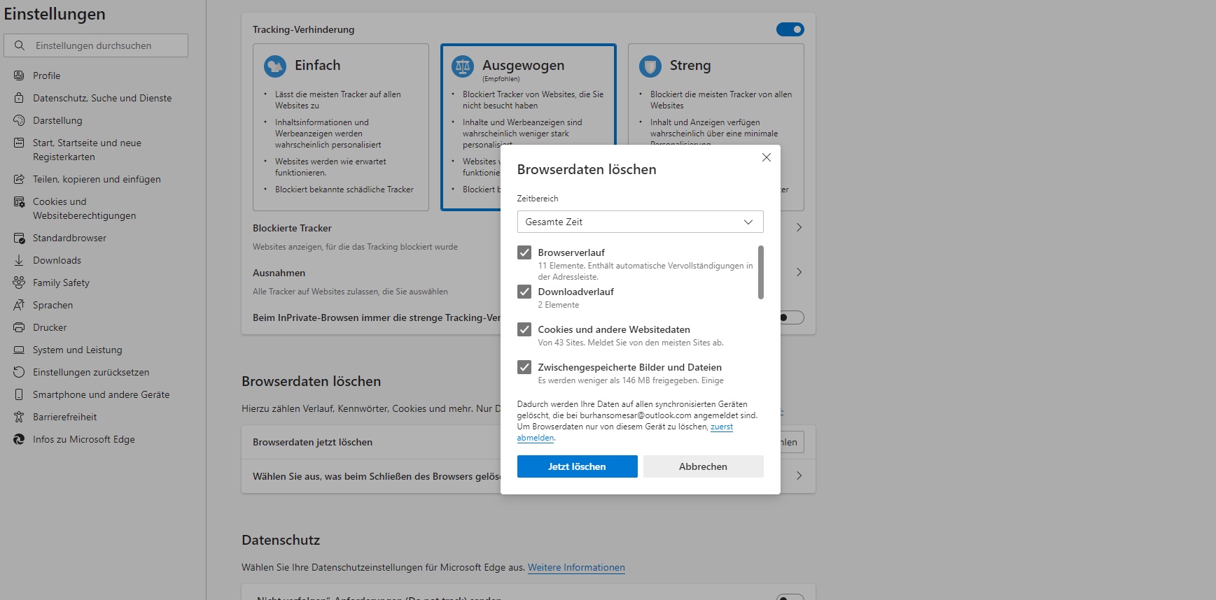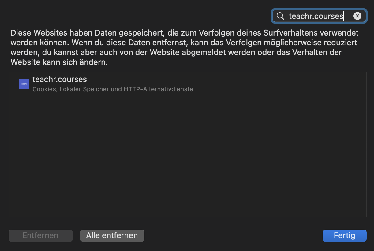 Im Abschnitt Cookies und Websitedaten kannst du als Tastenkombination Strg + Umschalt + Entf auf Windows und ⇧ [shift] + ⌘ [cmd] + [del] auf Mac verwenden.