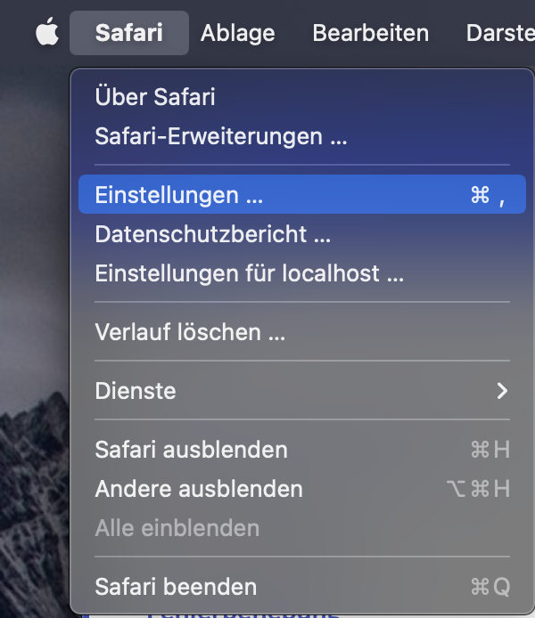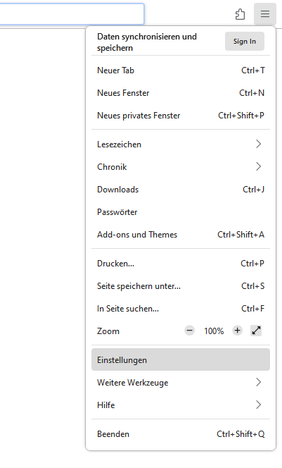 - Klicke auf die Menüschaltfläche ☰ und wähle Einstellungen.
