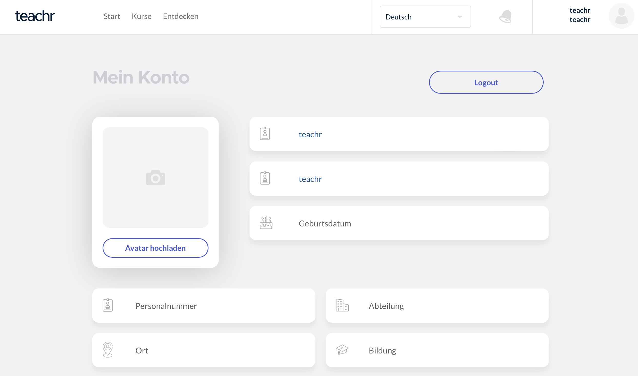 Als teachr-Benutzer können Sie Ihr Konto verwalten indem Sie auf Ihr Dashboard gehen und auf Mein Konto in der linken Seitenleiste klicken.