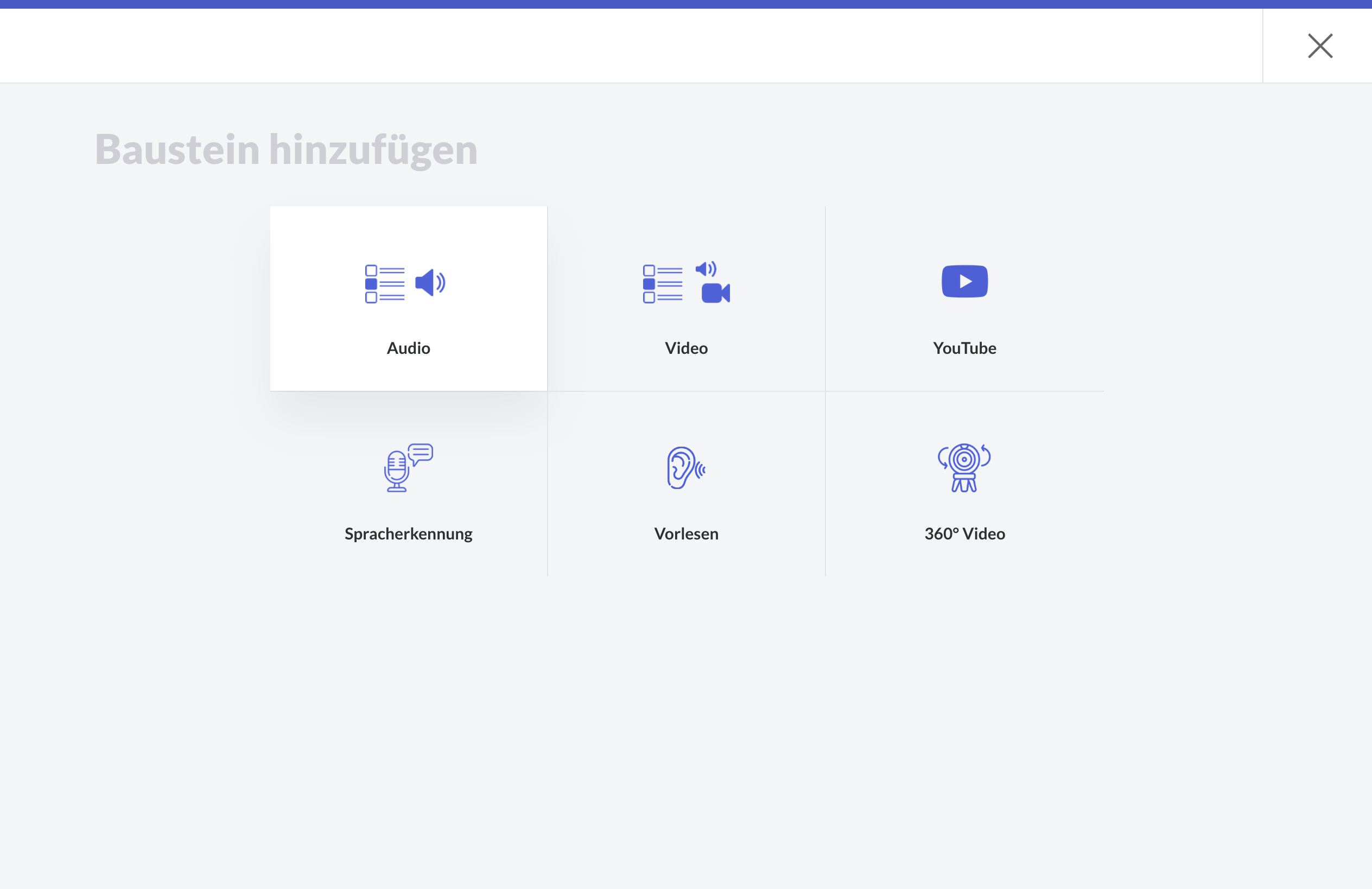 Sie können Audiodateien hochladen und damit ein Quiz erstellen. Dies ist zum Beispiel nützlich, wenn Sie Geräusche oder Klänge hochladen möchten, die der Nutzer lernen muss zu hören.