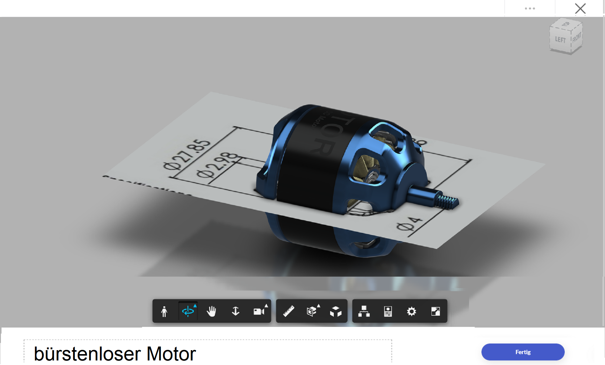 Die Lernenden sehen unten auf der Seite eine Symbolleiste, die viele Werkzeuge zur Auswahl bietet, z. B. First Person View, Orbit, Pan, Zoom, Kamera-Interaktionen, Messungen der Datei usw.
