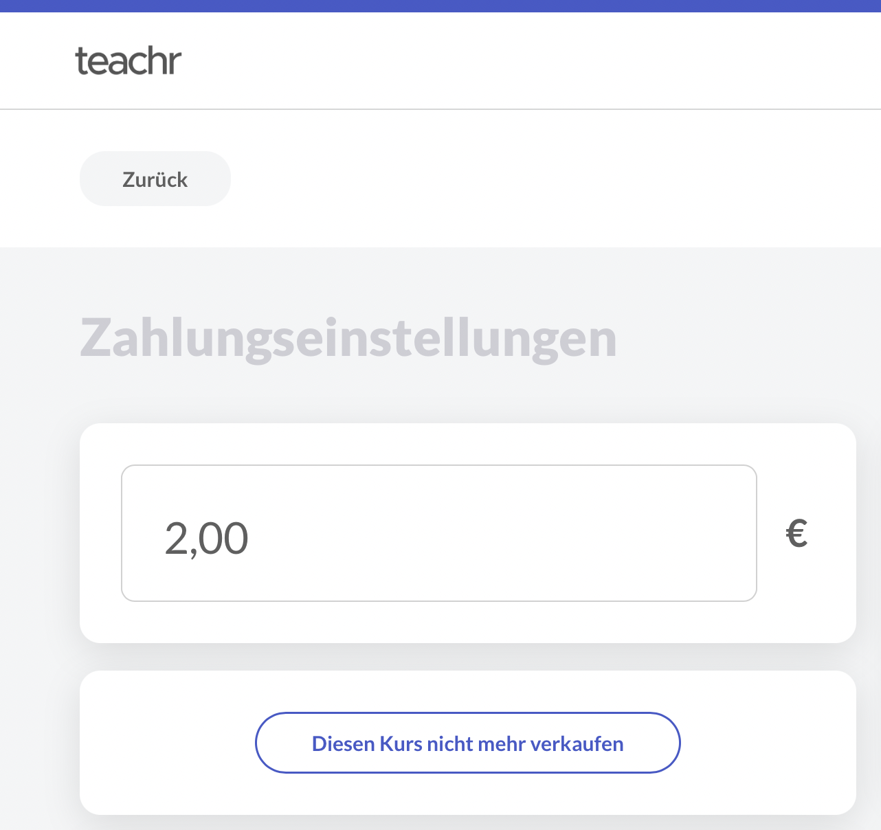 Jetzt müssen Sie nur noch einen Kurspreis eingeben. Wenn Sie diesen festlegen, können Sie Zahlungen für Ihren Kurs entgegennehmen.