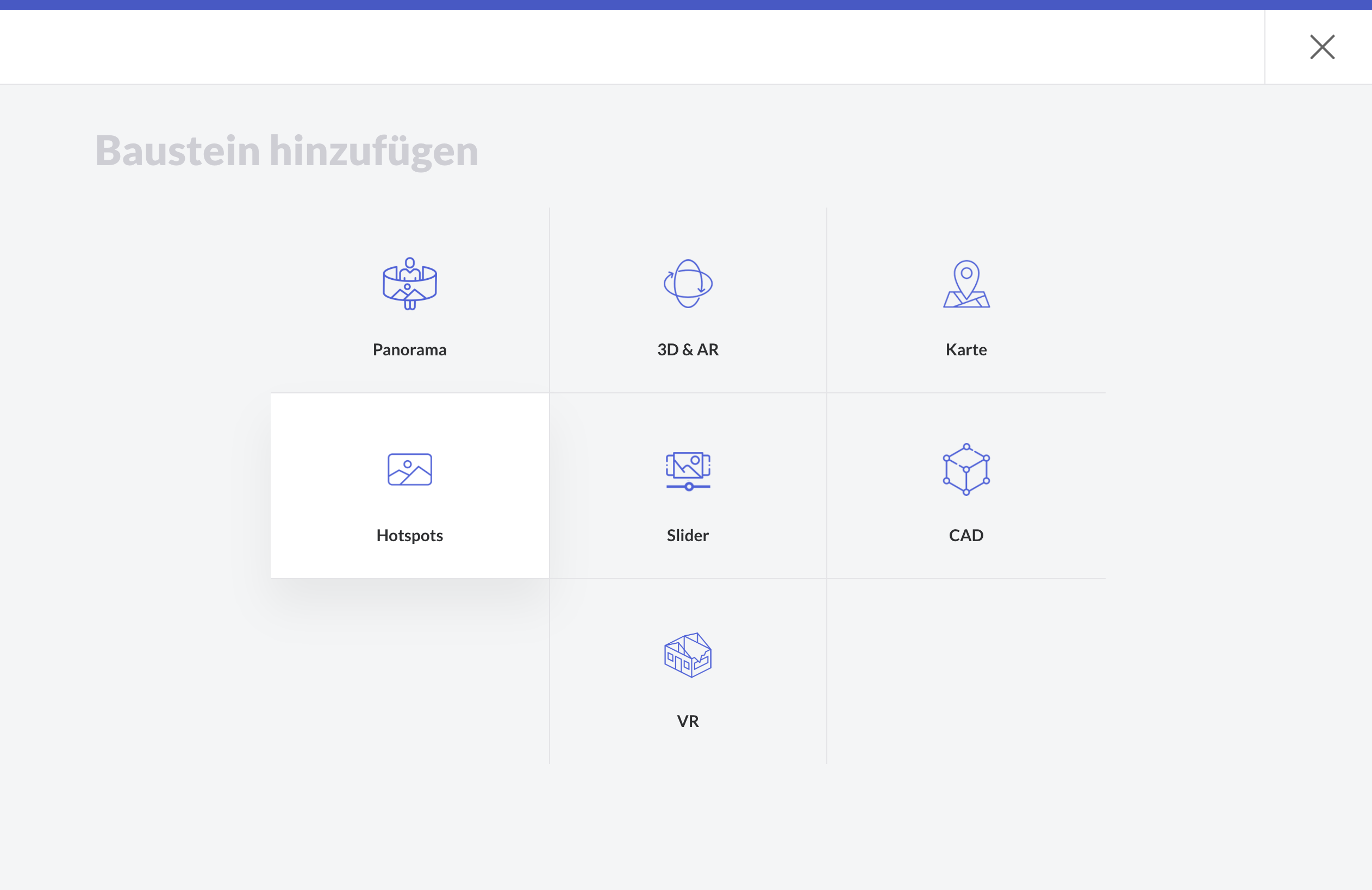 Gehen Sie zu Ihrem Kurs ➝ Ihre Sektion ➝ einen neuen Baustein hinzufügen ➝ (Alle Bausteine) ➝ Extended Reality ➝ Hotspots