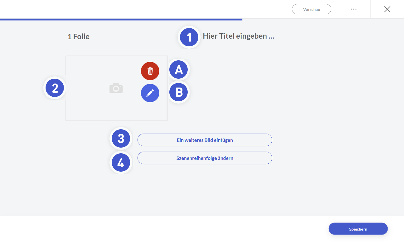 - B. Ein neues Bild an eine Szene anhängen (durch Klicken auf das Stiftsymbol).