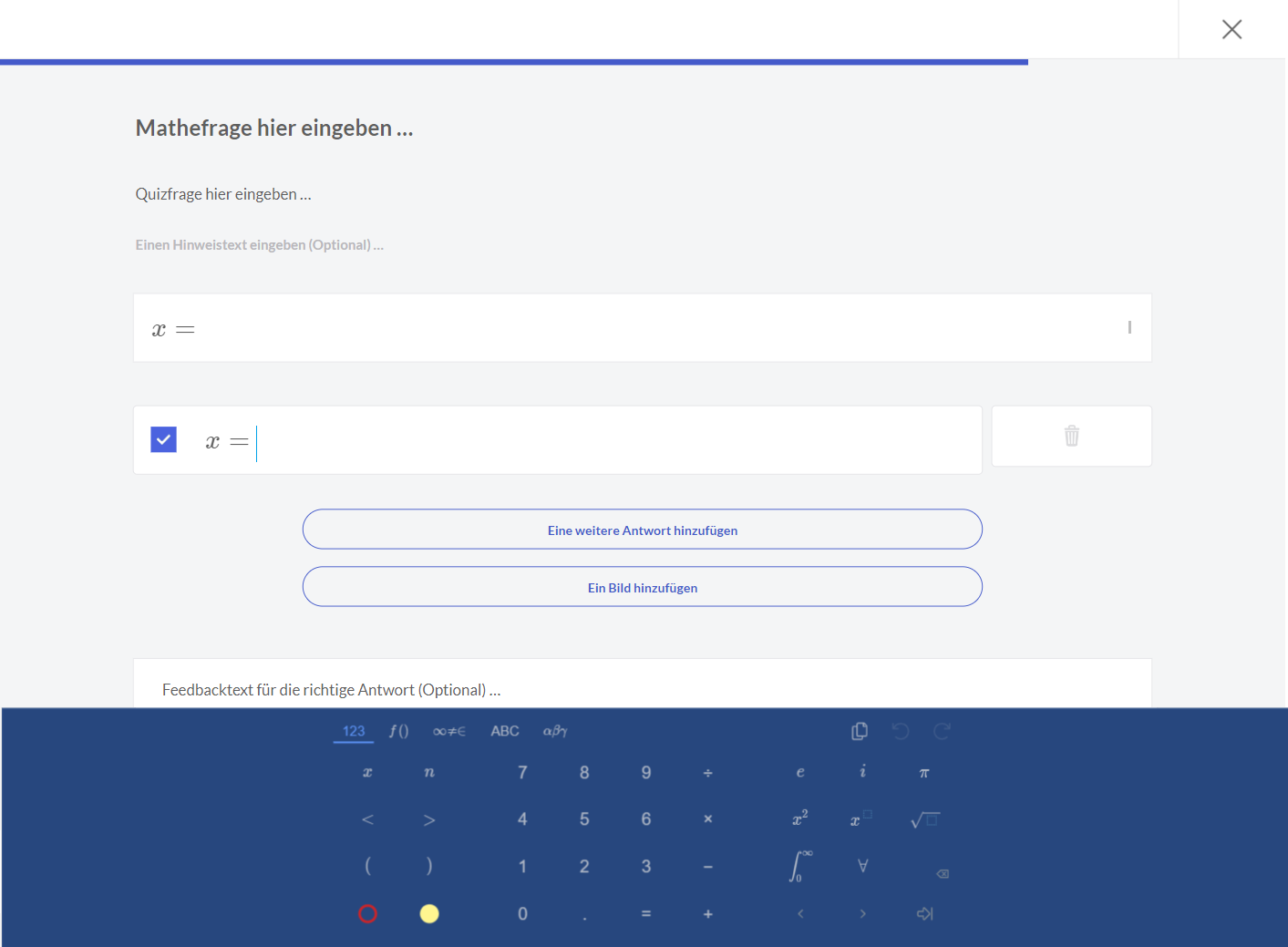 Ein Mathe-Quiz unterscheidet sich nicht von einem normalen Quiz, abgesehen von einem wirklich coolen Mathe-Editor zur Eingabe von Formeln!