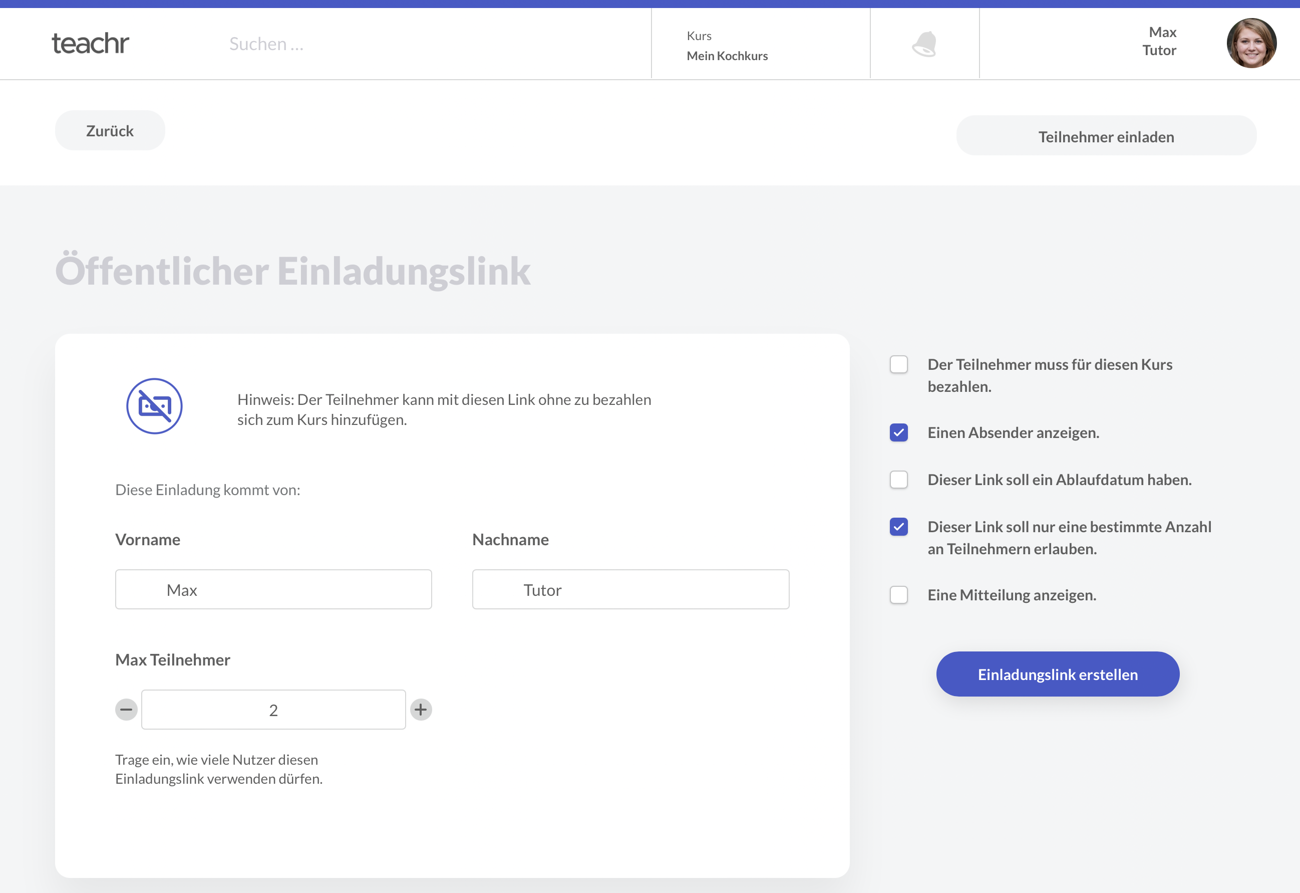 Sobald Sie Ihren Kurs abgeschlossen und öffentlich zugänglich gemacht haben, können Sie ganz einfach Teilnehmer einladen.