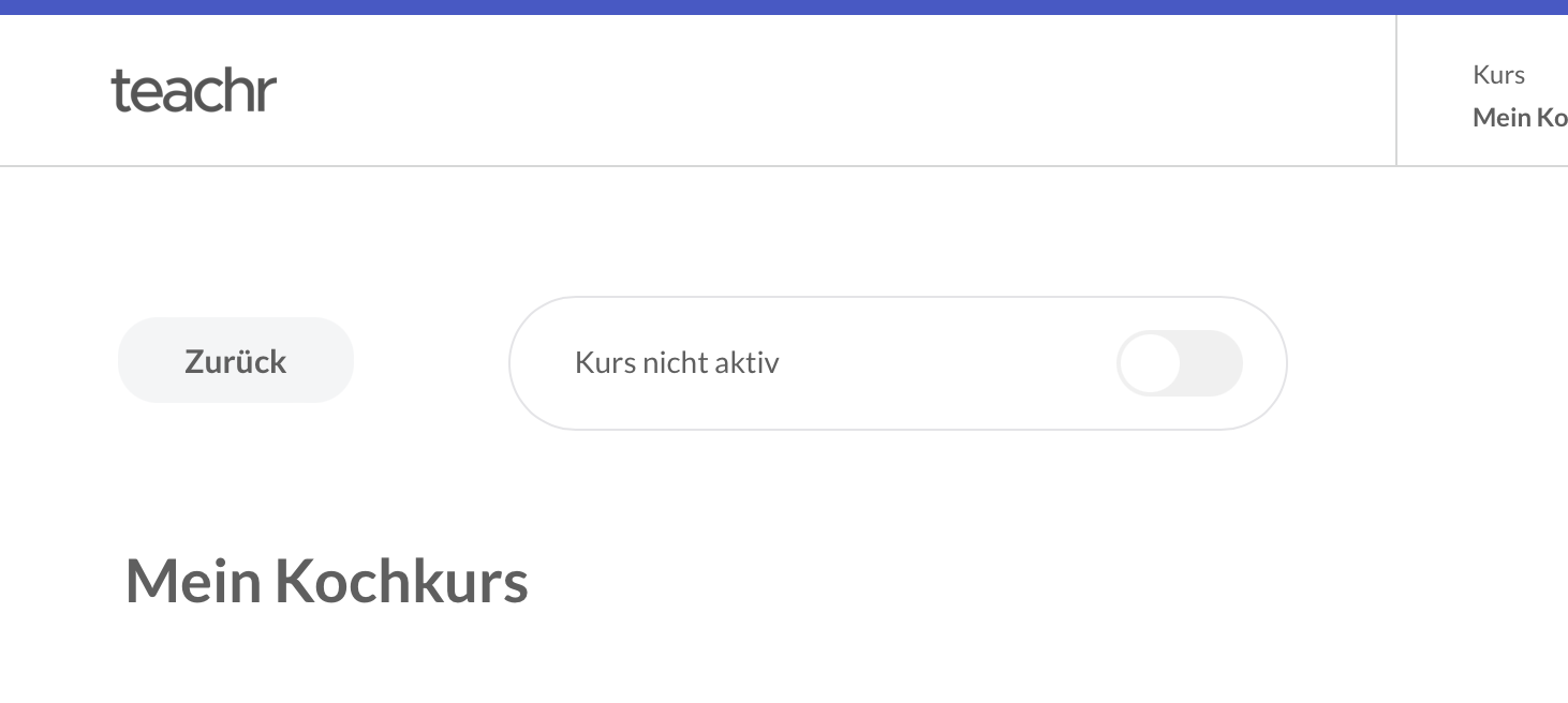 Sie können den Kurs auch über den Schalter veröffentlichen. Hier sehen Sie "der Kurs ist nicht aktiv".