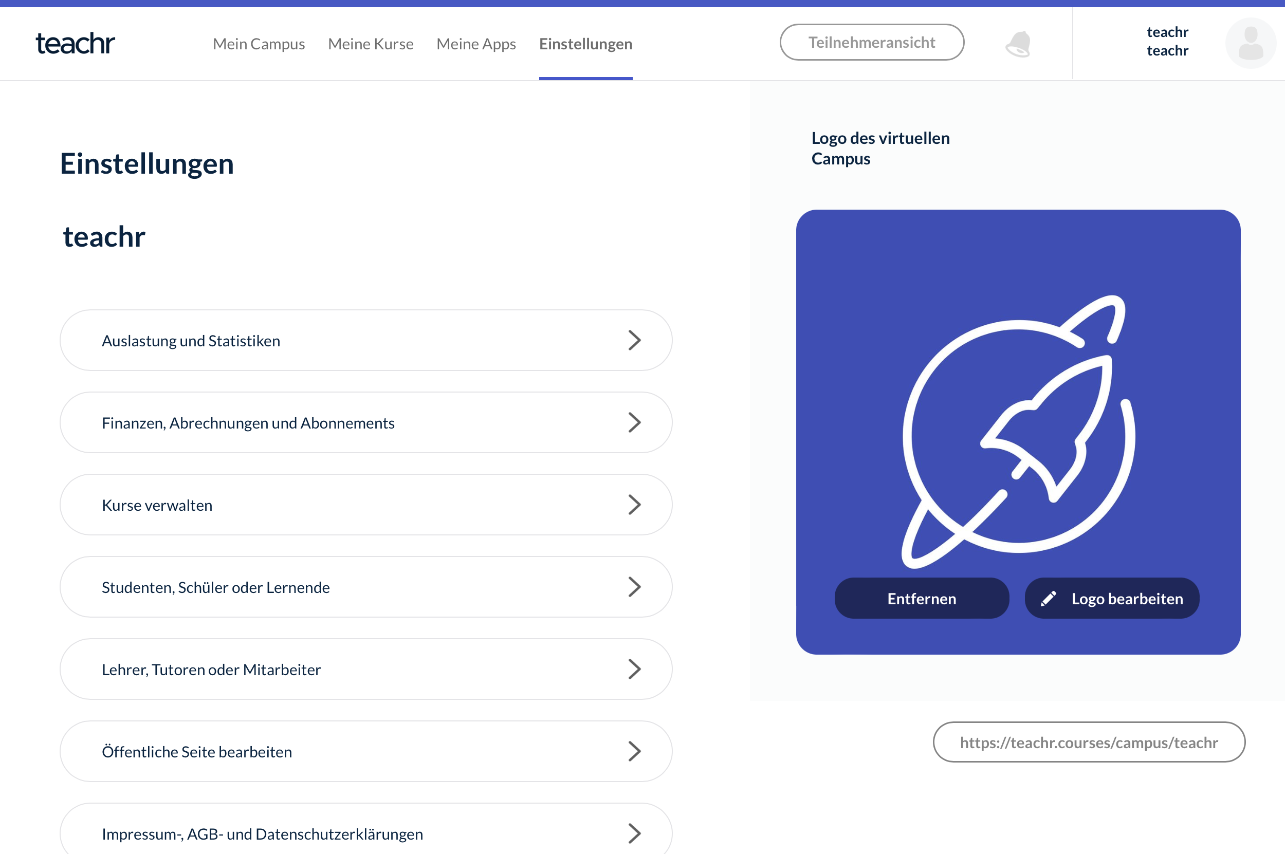 Sie können Ihren Campus verwalten, indem Sie zu Dashboard ➝ Mein Campus gehen
