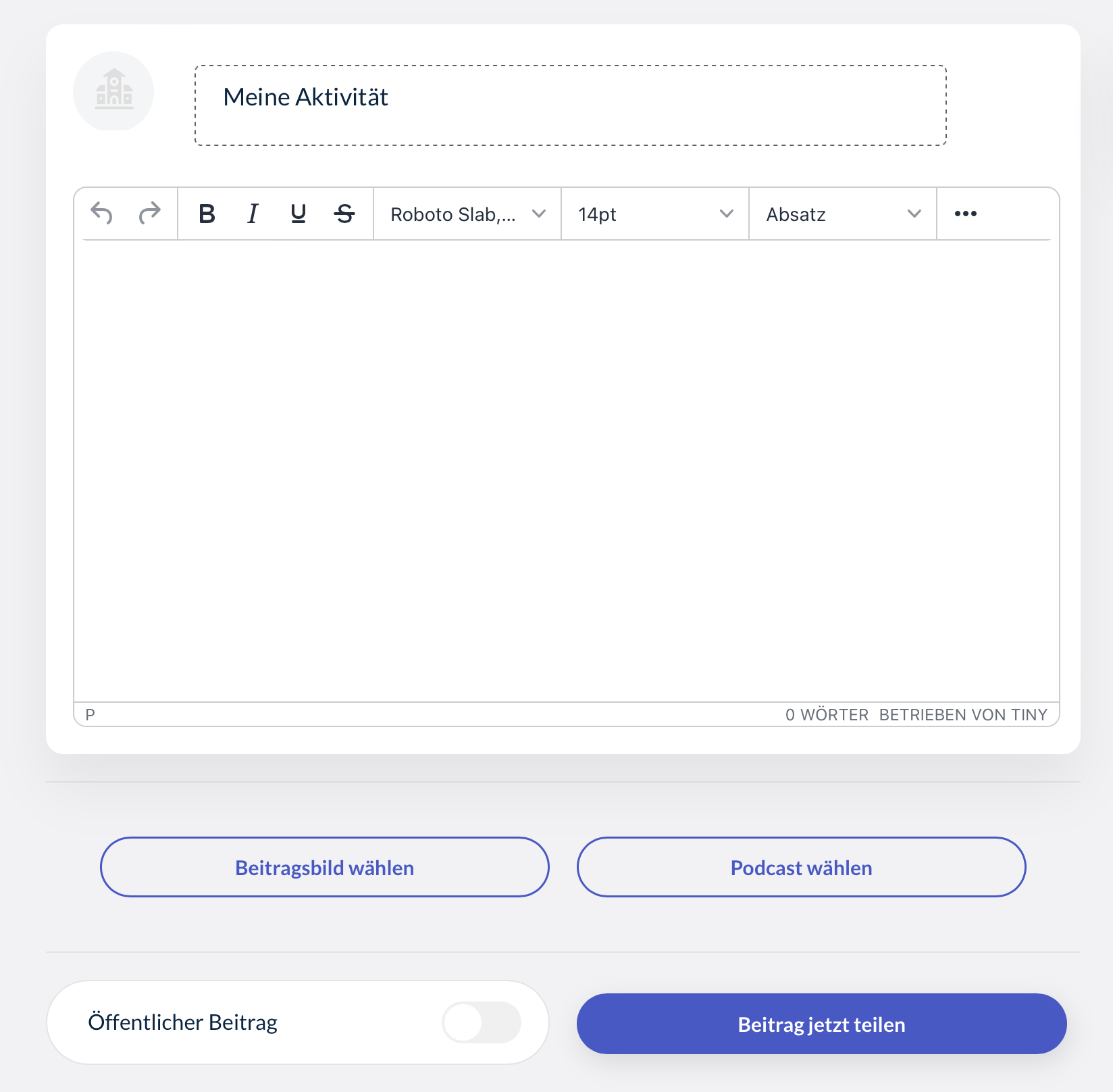 Natürlich können Sie Ihre Aktivitäten auf teachr teilen. Sie können Ihrem Publikum (z. B. Studenten und Mitarbeitern) mitteilen, woran Sie gerade arbeiten. Oder was für einen tollen Kurs Sie veröffentlicht haben. Wenn Sie dies auf Ihrem Campus teilen, lenken Sie die Aufmerksamkeit auf Ihre Inhalte, denn die Aktivitätsseite ist das erste, was sie sehen, wenn sie sich einloggen.
