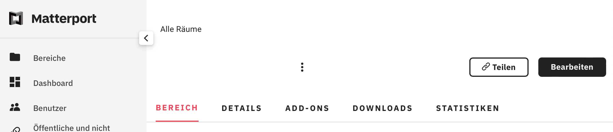 Für diese Funktion müssen Sie die App Matterport in Meine Apps aktivieren.