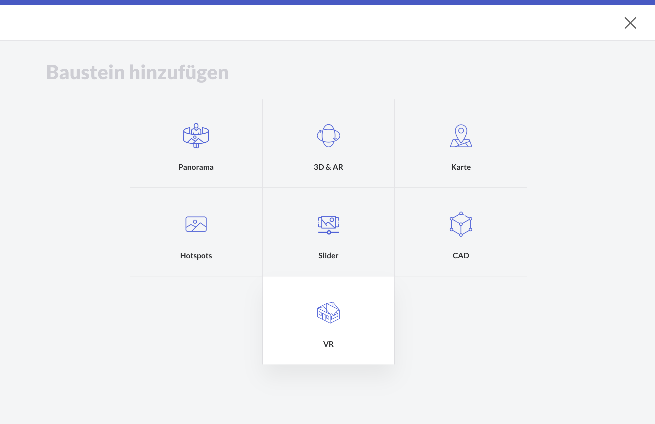 Gehen Sie zu Ihrem Kurs ➝ Ihre Sektion ➝ einen neuen Baustein hinzufügen ➝ (Alle Bausteine) ➝ Extended Reality ➝ VR
