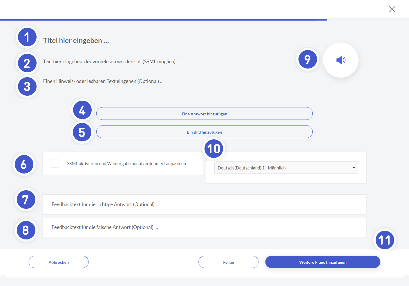 - Klicken Sie hier, um SSML zu aktivieren/deaktivieren und Ihr Playback anzupassen.
