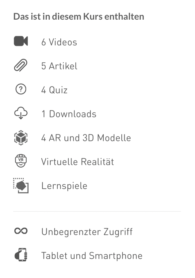 Sie können auch einige hochgeladene AR/3D-Objekte aus Ihrem Kurs auf Ihrer öffentlichen Seite auswählen. Eines davon wird ohne Anmerkungen sichtbar sein.