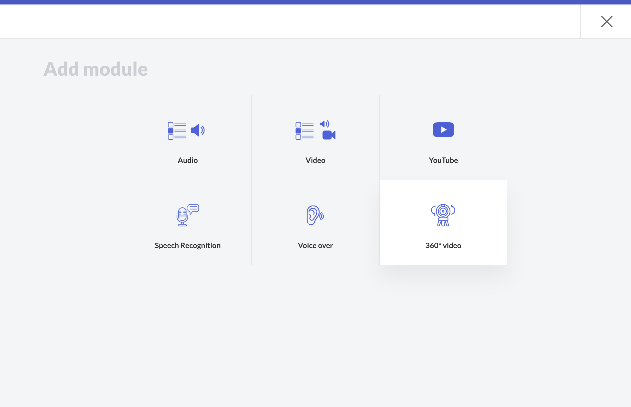 Go to your course ➝ your Section ➝ add a new building block ➝ (All modules) ➝ Audio or Video ➝ 360° Video