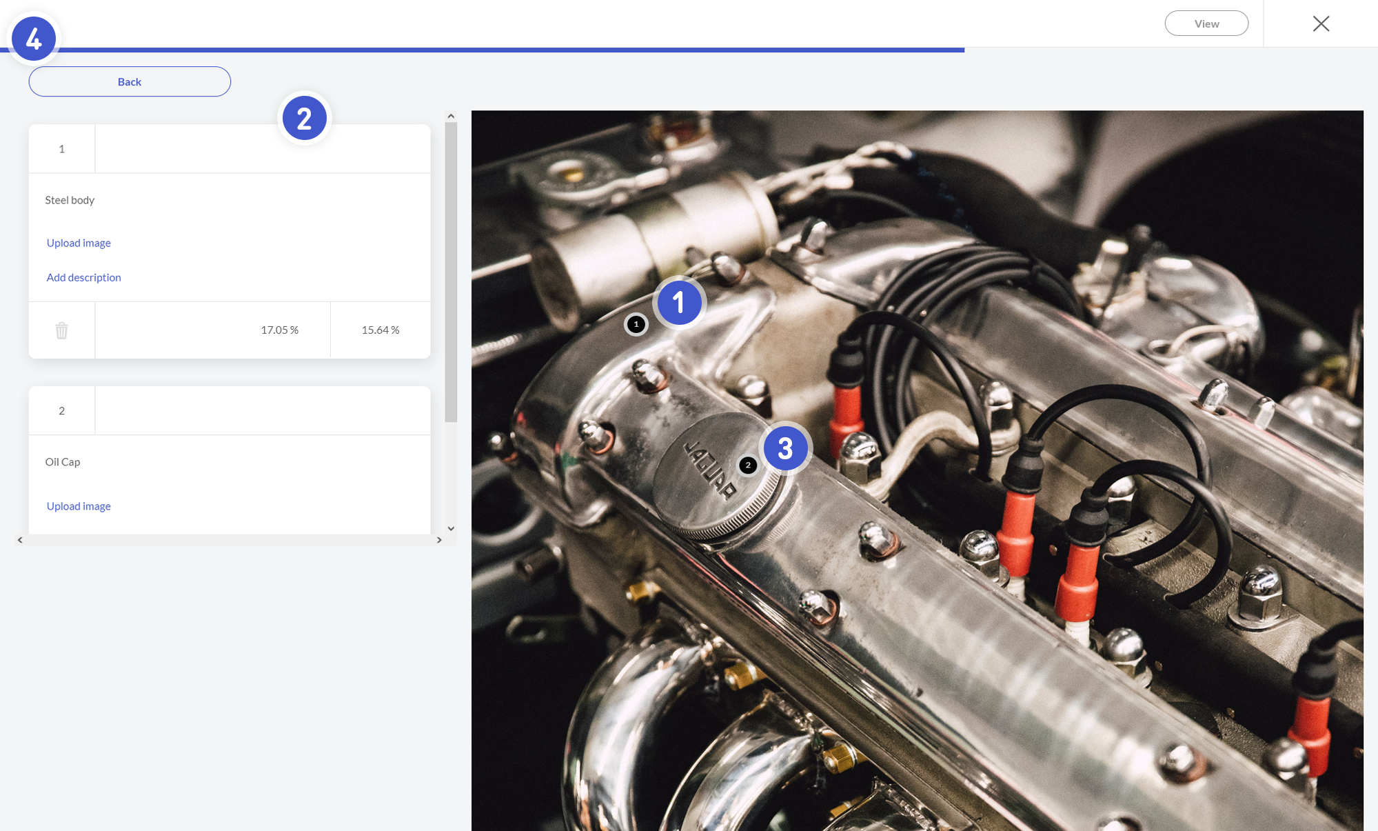 Hotspots lets you upload an image and tag it (with a hotspot). Excellent for explaining machine parts, construction elements, landscapes or scenes with very detailed elements.