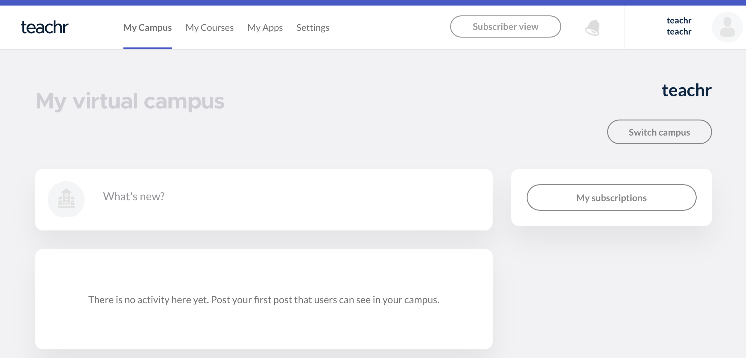 By default teacher, staff and user management is deactivated. If you are planning to use teachr for your students of your school, college or university go to Dashboard ➝ My Apps ➝ Activate the App "User management" so you can collaborate with your colleagues to create courses.