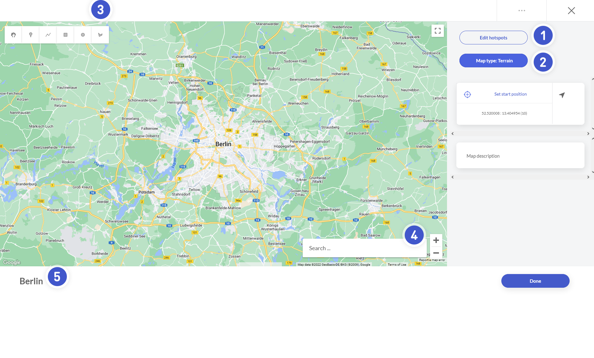 Maps are a great way to incorporate a real-world map into your online digital courses. You can use them to visually convey various road, location, and terrain-based learning content.