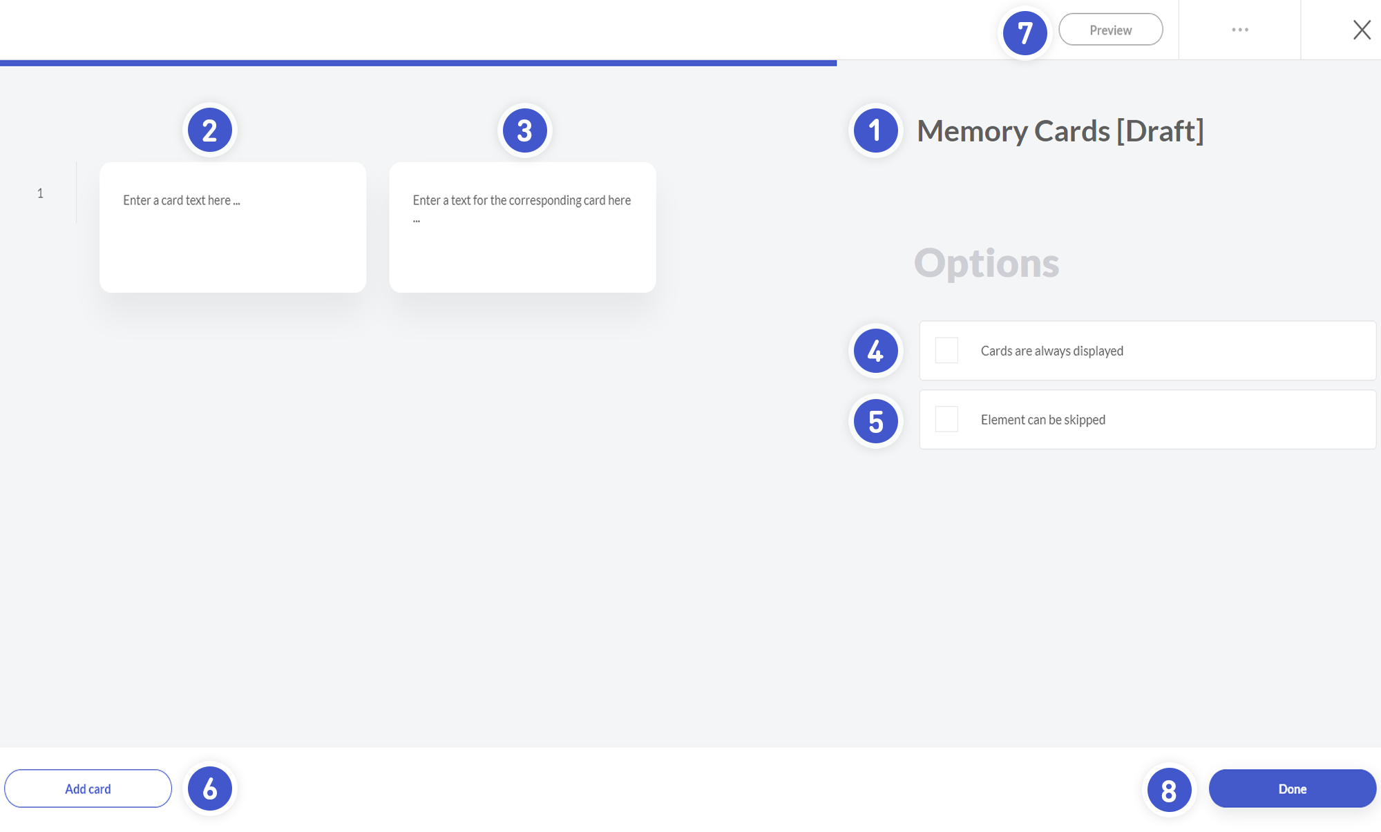 - Click here to enter a text for the corresponding card.