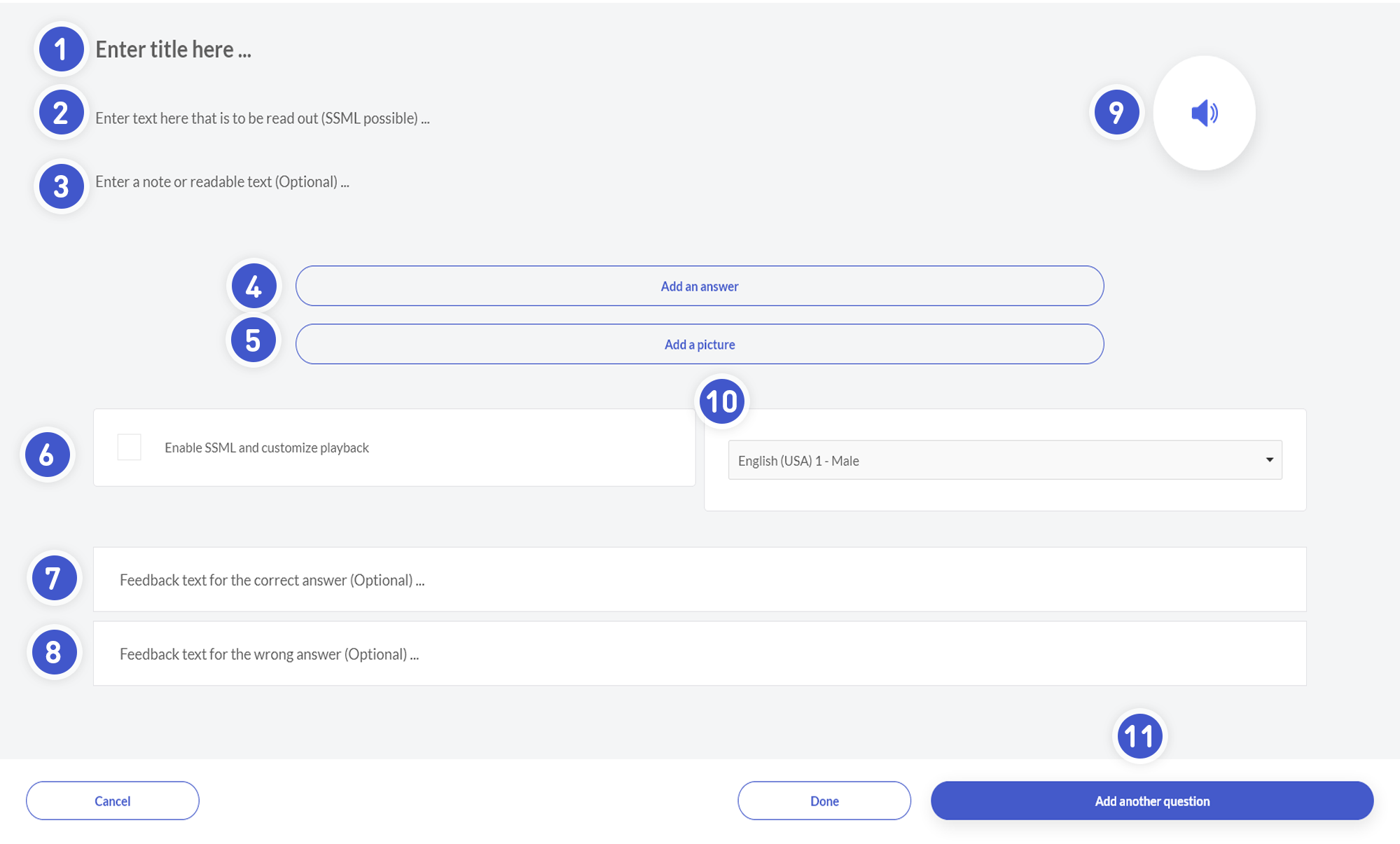 If you just want to read something aloud, you don't need to fill in the quiz question or add answers. Just enter a title and text to read aloud. The system will then not create a quiz.