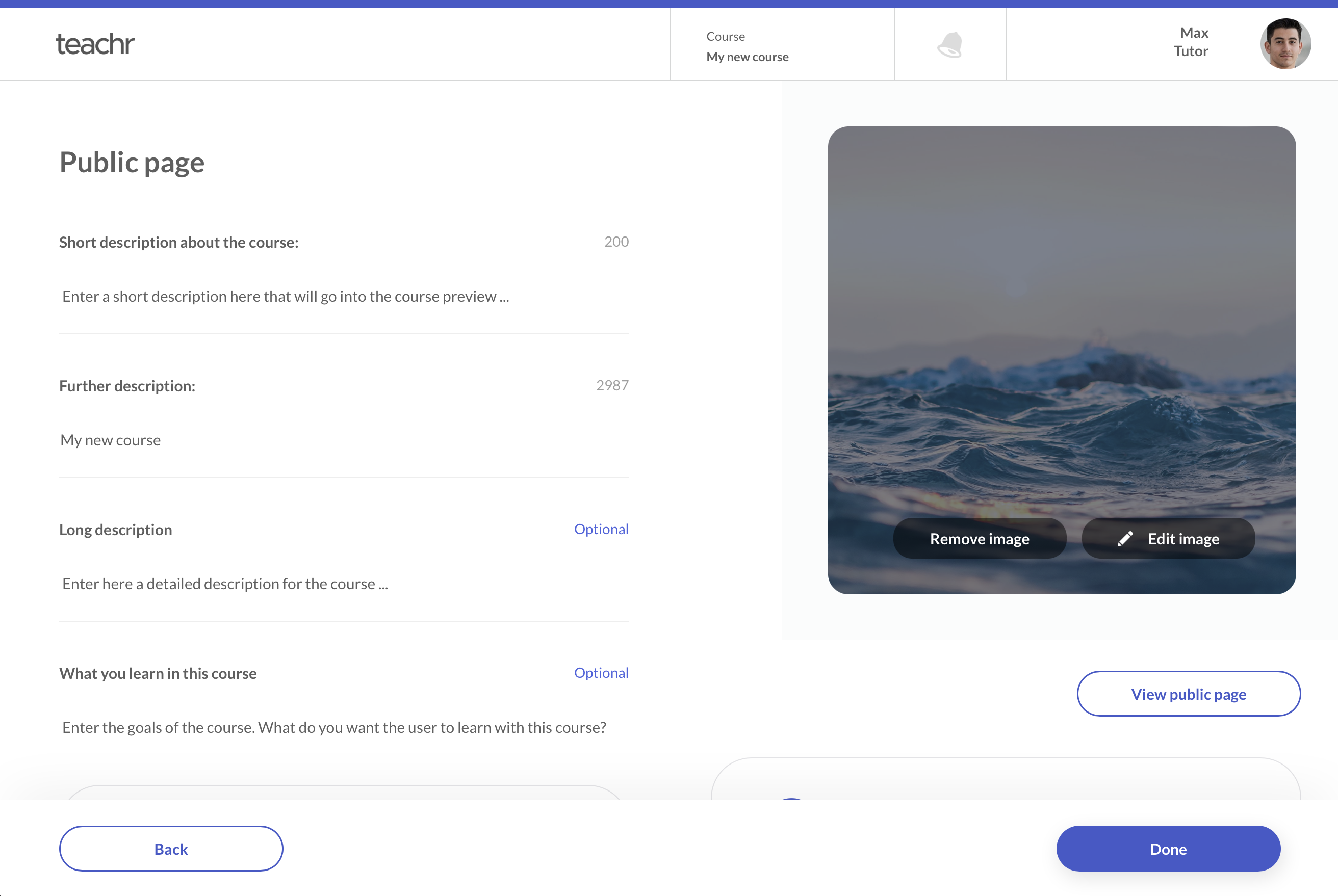 You can show your course to a public audience if you want to sell it, for example. teachr offers you a beautifully designed landing page to promote your course.