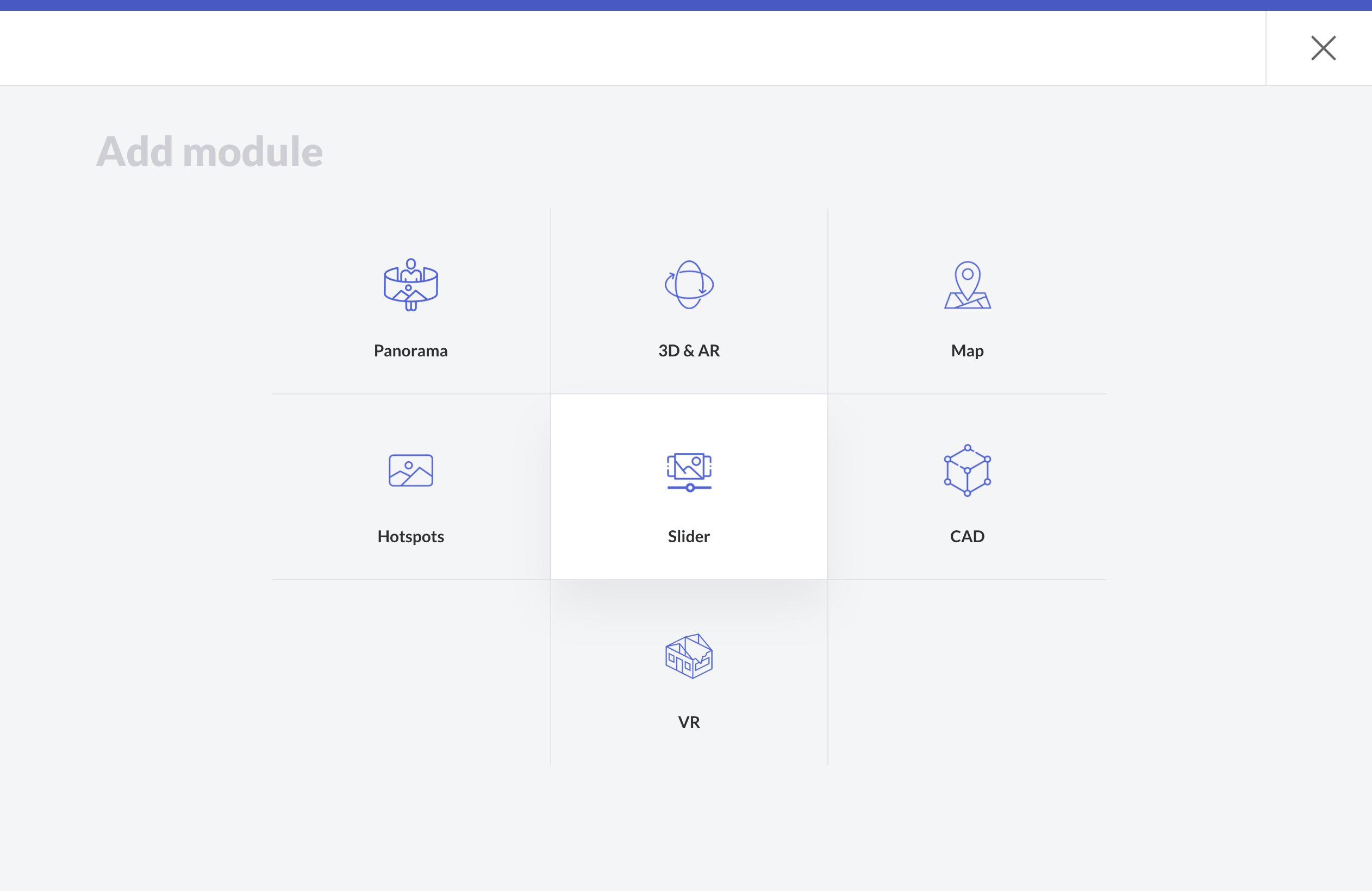 Go to your course ➝ your Section ➝ add a new building block ➝ (All modules) ➝ Extended Reality ➝ Slider