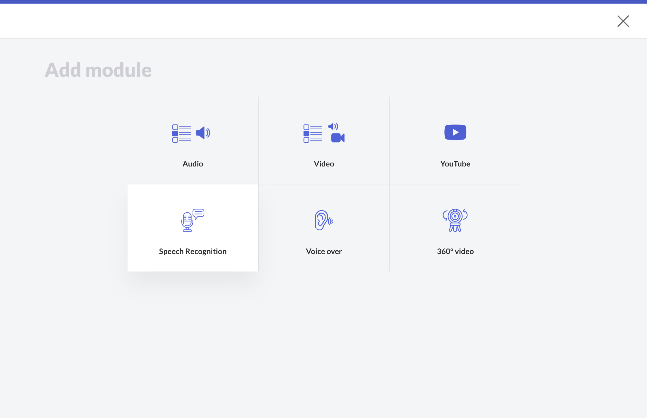 Go to your course ➝ your Section ➝ add a new building block ➝ (All modules) ➝ Audio or Video ➝ Speech recognition