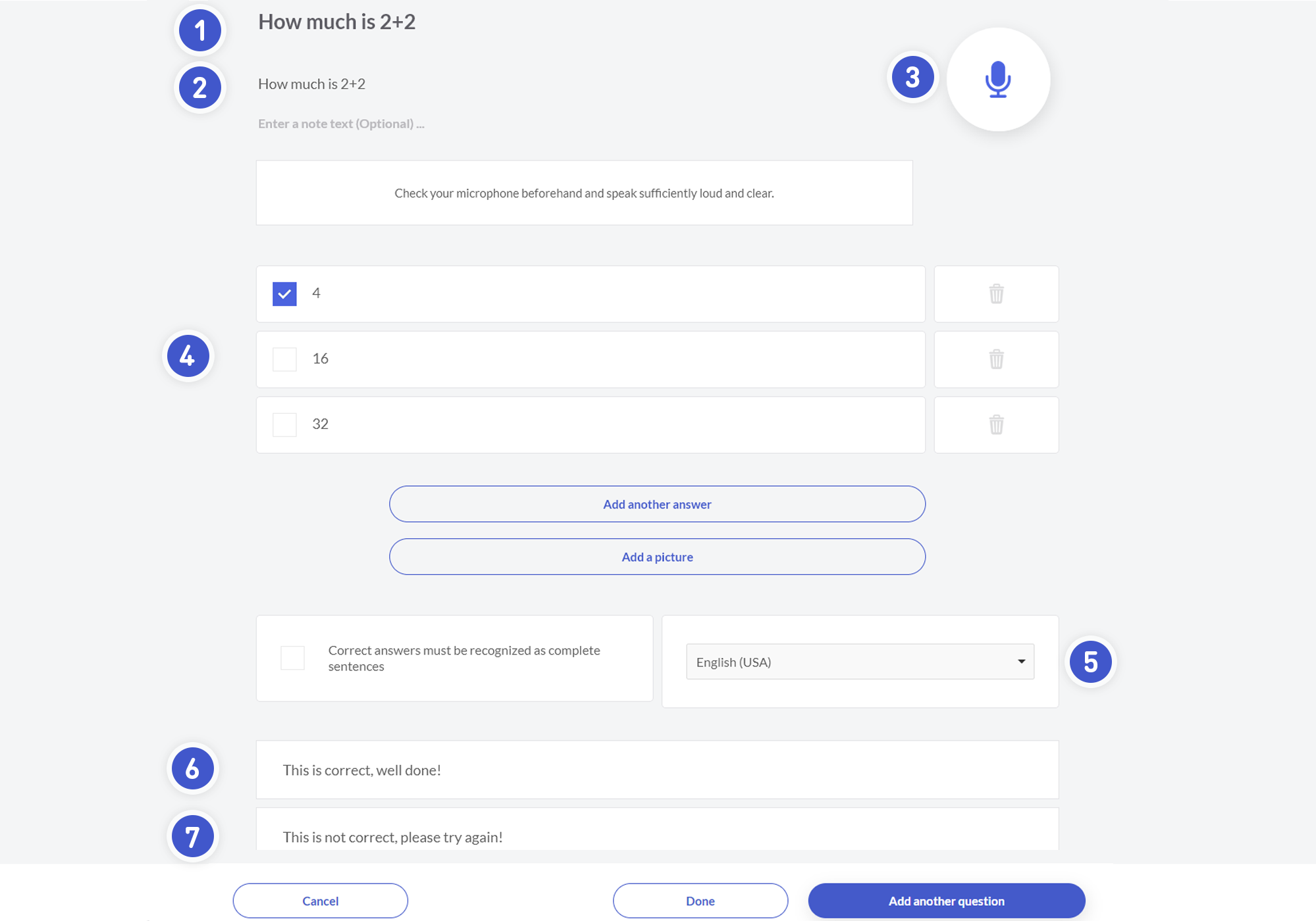 - Click to speak your answer so you can test if your answer will recoginzed correctly.