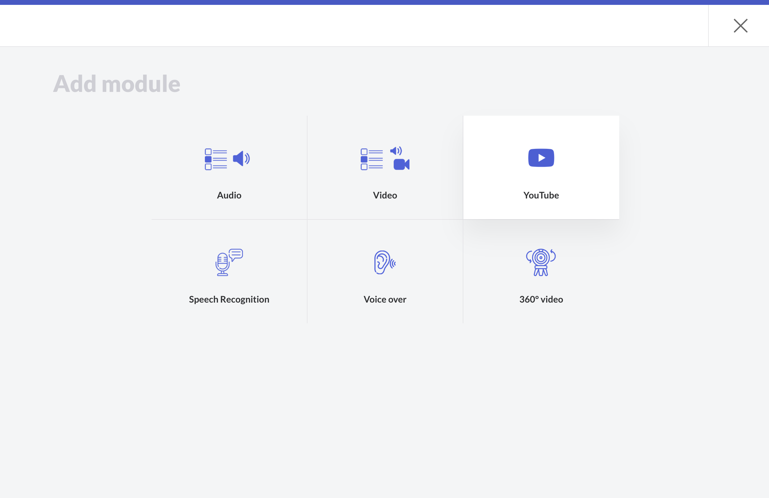 Go to your course ➝ your Section ➝ add a new building block ➝ (All modules) ➝ Audio or Video ➝ YouTube